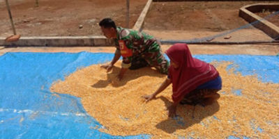 Dampingi Petani Jagung, Babinsa Bantu Penjemuran Jagung Milik Warganya