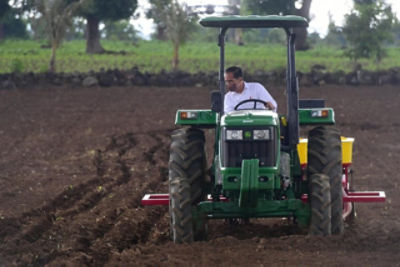 Traktor berwarna hijau pun melaju perlahan di hamparan lahan. Bersama Menteri Pertanian, Presiden Jokowi berkeliling satu putaran lahan. Kepala Negara memandang, pemanfaatan alat mekanis pertanian seperti traktor dibutuhkan jika lahan garapan para petani sangat luas sehingga penanaman bisa lebih efektif.