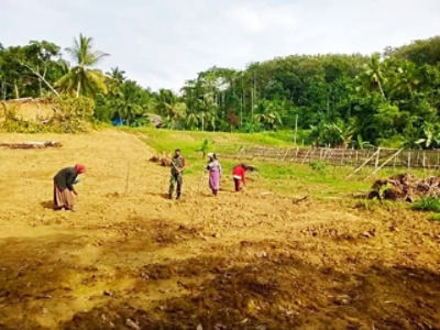 Serda Luluk Setiawan bersama warga Desa Paya Cut Kecamatan Peusangan Bireuen , melakukan prosesi penanaman Jagung Selasa, 11 Januari 2022 sangat menyemangatkan petani di sana.