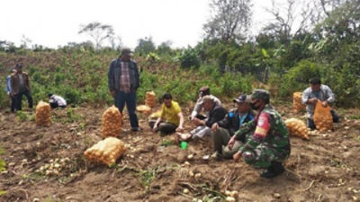 Komandan Koramil melalui Bati Tuud, Peltu Edi Arianto, Rabu (15/9/2021), menyampaikan, panen kentang program ketahanan pangan tingkat kampung itu merupakan hasil dari apa yang ditanam sekitar tiga bulan lalu oleh petani setempat.