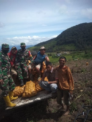 Redelong Baranewsaceh.co | Dalam rangka meningkatkan produktivitas Petani kentang di wilayah binaannya, Babinsa Desa Nosar jaya, Serda Junaidi melakakukan pendampingan program Ketahanan Pangan bagi Petani di Desa Darus kecamatan Permata Kabupaten Bener Meriah. Senin 11/1/2021