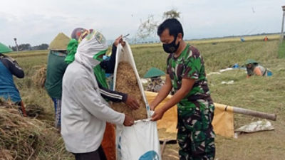 Dalam kesempatan itu, Babinsa Sertu Tofik menuturkan salah satu warga yang disambanginya yaitu Darkam (50) yang sedang memanen padi miliknya. Panen padi di atas lahan seluas 1 Hektar dengan varietas Padi jenis HT menghasilkan profitas sebanyak 6,5 ton.