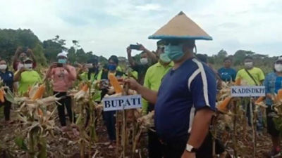 Seperti yang baru saja ia panen yaitu jagung dan kacang yang berhasil ditanam petani di lahan seluas 1 hektare.