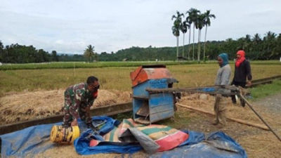 Hal ini untuk mewujudkan dukungan TNI khususnya prajurit kewilayahan yaitu Babinsa dalam mensukseskan program swasembada pangan, dengan semangat ikut serta terjun langsung kesawah bantu para petani desa binaannya saat memanen padi.