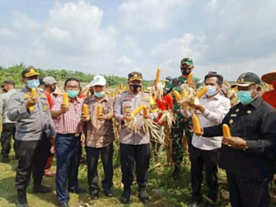 Sebelum panen Jagung, Forkompinda bersama kelompok Tani Sastra Prahita Bhayangkara terlebih dahulu melakukan penanaman perdana bawang merah.