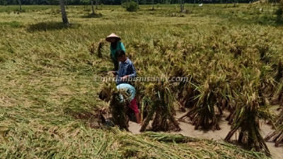 Dijelaskan mereka dan petani lainnya, ada ratusan hektare yang rusak tanaman padi dihembus angin pusing.