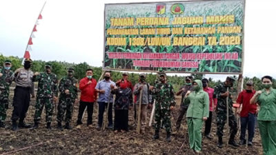 BANGGAI,SULTENG – Mendukung program ketahanan pangan, Danrem 132/ Tadulako/ Brigjen TNI Farid Makruf MA, mendampingi Dandim 1308/LB Letkol Inf Fanny Pantouw, melakukan penanaman perdana jagung manis, nilam dan ubi di lokasi ketahanan pangan Kodim 1308/LB di Desa Sayembongin, Kecamatan Nambo, Kabupaten Banggai, (22/6/20) kemarin.