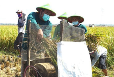 BLORA,– Bupati Blora Arief Rohman rela ikut ngedos. Pada panen perdana padi organik bersama para petani di Desa Mendenrejo, Kecamatan Kradenan kemarin. Padi organik ini merupakan hasil binaan Lembaga Pengembangan Pertanian Nahdlatul Ulama (LPPNU).