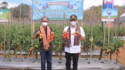 Bupati juga senang karena dalam membudidaya tomat ada kerja sama yang baik antara petani, pemerintah dan swasta sehingga hasil panen petani langsung dipasarkan.