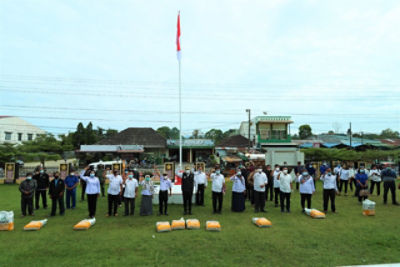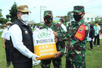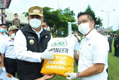 SIDIKALANG - Bupati Dairi, Dr. Eddy Keleng Ate Berutu serahkan 14.385 Kg benih jagung Varietas Pioneer 32 kepada 191 kelompok tani yang ada di 14 Kecamatan Kabupaten Dairi, Rabu (23/12/2020) di halaman kantor Bupati Dairi.