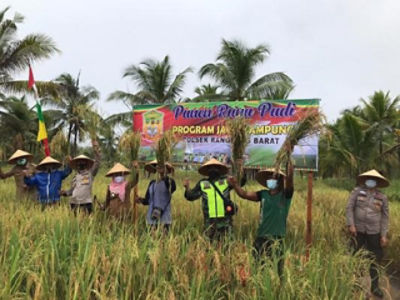 SELATPANJANG - Polsek Rangsang Barat melaksanakan panen raya padi program jaga kampung dalam mewujudkan program Kapolda Riau Irjen Agung Setya Imam Effendi untuk menjaga ketahanan pangan bagi masyarakat, Selasa (29/12/2020).