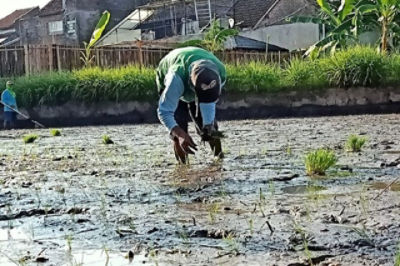 Setiap hari, sejak pagi buta ia dan rekan-rekannya yang bermata pencaharian serupa sudah melumpur di sawah, menjual tenaganya untuk membantu petani menanam padi (nandur).