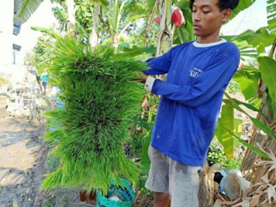 "Satu patok sawah bisa diselesaikan tiga orang. Petani tidak susah repot-repot menyiapkan bibit padi, karena bayaran sudah terhitung dengan bibitnya" terang Agus.