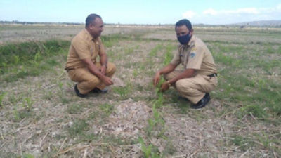 " Ada beberapa titik area tanaman jagung yang dimasuki ternak kambing dan sapi. Kita langsung panggil pemiliknya untuk tanam kembali tanaman jagung yang dimakan ternaknya sebelum kita kembalikan ternak tersebut," ujarnya.