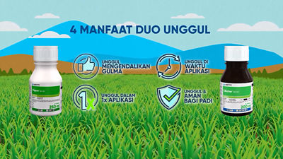 Dengan spektrum 2x lebih luas. Gulma terkendali padi aman terjaga, untuk hidup lebih maju