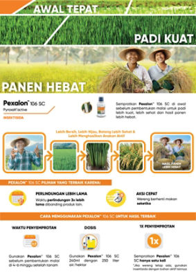 Semprotkan PexalonTM 106 SC di awal sebelum pembentukan malai untuk padi lebih kuat, lebih sehat dan hasil panen lebih hebat.